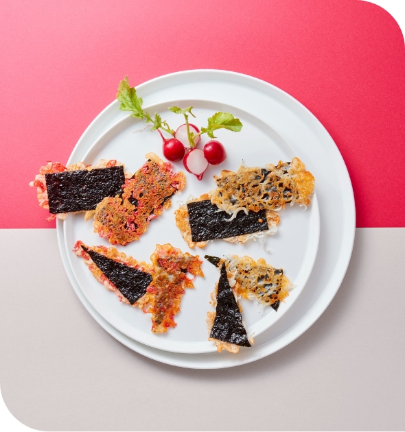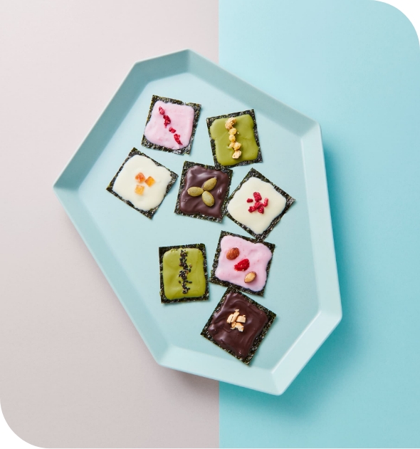 時間をかけて丁寧に焼き上げたのりは、音までおいしく楽しい食感に。